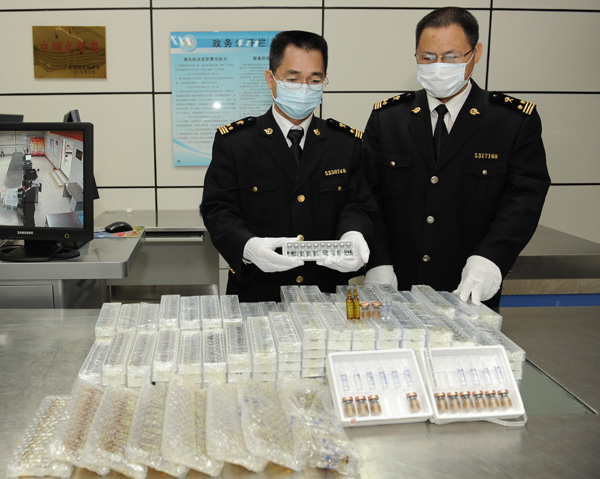 图为:深圳海关隶属深圳湾海关查获走私高价值保健品 梁小军/摄